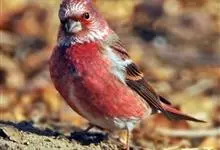 喜马拉雅白眉朱雀:小型鸟类,体长15-17厘米,体重24-35克。额基、眼先深红色,前额和一条长而宽阔的眉纹珠白色沾有粉红色并具丝娟光泽,在暗色的头部极为醒目。头顶至背棕褐或红褐色、具黑褐色羽干纹,…全部>>