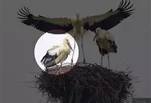 白鹳,是鹳形目鹳科鹳属鸟类。白鹳曾确定为3个亚种:指名亚种、中亚亚种和东方亚种。其体长约111厘米。嘴形直、粗厚而侧扁;体羽除飞羽黑色具铜绿色金属光泽外,余部均为白色;眼周裸区、脚、趾红色,嘴黑色。…全部>>