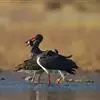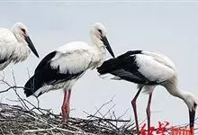 黑头鹮鹳:大型涉禽。体长102厘米,翼展150-175厘米,体重2050-2640克。寿命10年。嘴长而粗壮,飞时头颈伸直。雌雄相似。成鸟上体白色,下体白色。翼下覆羽有黑色横带,具绿色光泽和白色羽缘。…全部>>