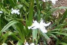 扁竹兰是鸢尾科鸢尾属植物,多年生草本。根状茎横走,直径4-7毫米,黄褐色,节明显,节间较长;须根多分枝,黄褐色或浅黄色。地上茎直立。叶10余枚,密集于茎顶,基部鞘状,互相嵌迭,排列成扇状,叶片宽剑形,…全部>>