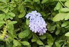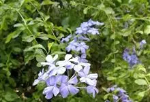 蓝花丹是白花丹科、白花丹属的常绿亚灌木。高约1米;叶薄,呈菱状卵形至狭长卵形;穗状总状花序,总花梗短,花冠淡蓝色至蓝白色,呈倒卵形,苞片呈线状狭长卵形,小苞呈狭卵形或长卵形,…全部>>