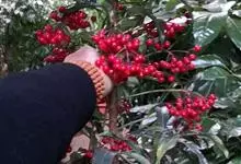 南天竹,小檗科南天竹属常绿小灌木植物,茎干较高,表面光滑无毛,红色;叶较小,叶片薄,呈椭圆形且为深绿色,无毛;花朵较小,白色带有芳香,呈四角形;果柄短且果实呈球形,橙红色;种子扁圆形。花期3-6月,…全部>>
