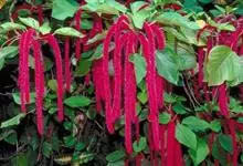 红穗铁苋菜:为大戟科、铁苋菜属植物,灌木,高0.5-3米。嫩枝被灰色短绒毛,毛逐渐脱落,小枝无毛。 花序色泽鲜艳,葇荑花序下垂,如狐狸尾状,雌花近卵形,长约0.8毫米,顶端急尖,具短毛;子房近球形,…全部>>