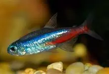 霓虹灯鱼(霓虹灯鱼、红莲灯鱼)鲤形目 > 脂鲤科 > 脂鲤科属 > 霓虹灯鱼