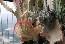 彩春峰是大戟科大戟属肉质植物,彩春峰的肉质茎依品种的不同有暗红色、乳白、淡黄及镶边、斑纹等复色。彩春峰的性状很不稳定,栽培中经常会发生色彩的变异,如暗紫红色肉质茎会长出白色黄色斑块等。…全部>>