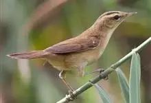 黑眉苇莺:体重7-11克,体长11-13厘米。上体橄榄棕褐色;眉纹淡黄色,杂有明显黑褐色纵纹;第2枚初级飞羽较第6枚短;下体白色,两胁暗棕色。虹膜暗褐色;嘴黑褐色,下嘴基淡褐色;脚暗褐色。…全部>>