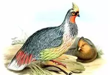 血雉雉科血雉属鸟类,别名血鸡、松花鸡,血雉的雄鸟大覆羽、尾下覆羽、尾上覆羽、脚、头侧、腊膜为红色,故称血雉。其别名甚多,各地皆异。在甘肃,因其胸侧和翅上覆羽沾绿,被称为“绿鸡”;因其羽毛形似柳叶,…全部>>