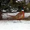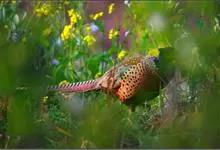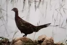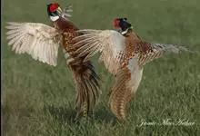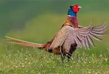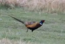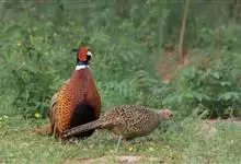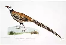 环颈雉是雉科、雉属的一种走禽,共有30个亚种。体重900-1050克,体长53-89厘米。体型较家鸡略小,但尾巴却长得多。雄鸟和雌鸟羽色不同,雄鸟羽色华丽,多具金属反光,…全部>>