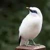长冠八哥:是一种大型椋鸟,体长约25厘米,雌雄相似,外形俊朗,羽冠发达,眼睛四周和面部裸出,裸露部分为蓝色,全身羽毛纯白色,尾部和翼端的边缘呈黑色,脚灰色。全身白色,具较长冠羽,…全部>>