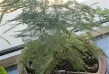 蓬莱松是天门冬科、天门冬属多年生丛生草本植物。宿存,圆柱形肉质根,纵截面为绿色和表面灰色。植株高可达3米。茎呈圆柱形或近四边形,底部木质化,具有灰色或灰褐色。幼嫩的茎在每个节上都被紫绿色鳞片包,…全部>>