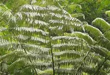 桫椤 R. M. Tryon),桫椤科桫椤属蕨类植物。茎干较高,上部有残存的叶柄;叶片大,呈长矩圆形;羽片互生,长矩圆形;叶脉在裂片上羽状分裂,基部下侧小脉出自中脉的基部;叶纸质,干后绿色。…全部>>