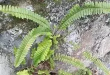 铁角蕨,铁角蕨科铁角蕨属植物。多年生草本。高13—35厘米。根茎短,密被粗筛孔状鳞片。叶簇生,褐色或黑褐色有光泽,一次羽状复叶,线状披针形,两端稍渐狭,羽片疏生,20对左右,有极短小柄,…全部>>