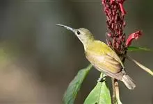 长嘴捕蛛鸟,小型鸟类,体长14-16厘米。嘴长而尖向下弯曲。上体橄榄绿色,眼先和短眉灰白色,两翅和尾暗褐色,外翈羽缘橄榄绿色,羽端灰褐色,自嘴基沿喉侧有一黑色纵纹。颏、喉灰白色,其余下体鲜黄色,…全部>>