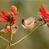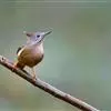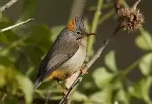 纹喉凤鹛:小型鸟类,体长13-16厘米。头顶和羽冠暗褐色或褐灰色,上体橄榄褐色,飞羽黑褐色,外侧次级飞羽表面橙黄色,构成一块纵形翼斑,极为醒目。颏、喉淡棕白色,具黑色纵纹,腹和尾下覆羽橙黄色。…全部>>