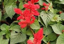 一串红,又称爆仗红、象牙红,为唇形科鼠尾草属植物。花序修长,色红鲜艳,花期又长,适应性强,为中国城市和园林中最普遍栽培的草本花卉。原产巴西、南美洲。喜温暖和阳光充足环境。不耐寒,耐半阴,忌霜雪和高温,…全部>>
