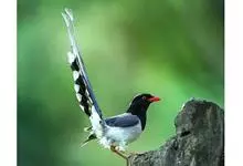 红嘴蓝鹊,别名山鹊、长尾鹊,是鸦科蓝鹊属的一种观赏性较强的大型鸣禽。该物种为体长54~65cm,头、颈、喉和胸黑色,头顶至后颈有一块白色至淡蓝白色或紫灰色块斑,其余上体紫蓝灰色或淡蓝灰褐色。尾长呈凸状,…全部>>