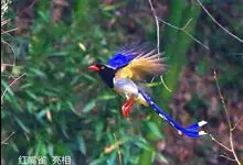 红嘴蓝鹊,别名山鹊、长尾鹊,是鸦科蓝鹊属的一种观赏性较强的大型鸣禽。该物种为体长54~65cm,头、颈、喉和胸黑色,头顶至后颈有一块白色至淡蓝白色或紫灰色块斑,其余上体紫蓝灰色或淡蓝灰褐色。尾长呈凸状,…全部>>