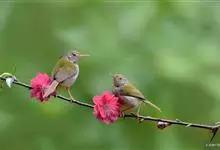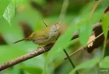 普通缝叶莺,是雀形目鹅科莺亚科缝叶莺属一种。体长10-14厘米,体重7-10克,雄鸟前额棕红,头顶至枕棕橄榄褐,上体橄榄绿染黄,飞羽及尾羽暗褐;繁殖期雄鸟的中央尾羽特形延长,下体淡皮黄白色。…全部>>