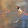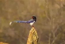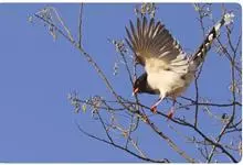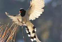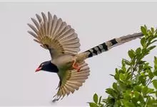 红嘴蓝鹊,别名山鹊、长尾鹊,是鸦科蓝鹊属的一种观赏性较强的大型鸣禽。该物种为体长54~65cm,头、颈、喉和胸黑色,头顶至后颈有一块白色至淡蓝白色或紫灰色块斑,其余上体紫蓝灰色或淡蓝灰褐色。尾长呈凸状,…全部>>