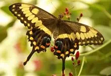 金凤蝶,是鳞翅目凤蝶科凤蝶属动物。金凤蝶为中型凤蝶,翅展70-84毫米,翅背面底色黑褐色,翅脉黑色,翅室具黄斑;前翅背面基部呈暗黄色,亚外缘为黑色,内具一列小黄斑;后翅背面亚外缘区具黑宽边,…全部>>