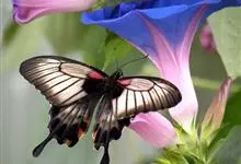 美凤蝶又名多型蓝凤蝶、大凤蝶,是鳞目凤蝶科凤蝶属动物。美凤蝶雄蝶无尾突,翅黑色,正面各翅室中部有深色条纹,分布蓝色鳞片,反面前后翅基部有红斑,后翅臀角有环状红斑。雌蝶具多型,前翅浅灰色,外缘和翅脉黑色,…全部>>