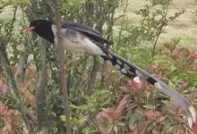 红嘴蓝鹊,别名山鹊、长尾鹊,是鸦科蓝鹊属的一种观赏性较强的大型鸣禽。该物种为体长54~65cm,头、颈、喉和胸黑色,头顶至后颈有一块白色至淡蓝白色或紫灰色块斑,其余上体紫蓝灰色或淡蓝灰褐色。尾长呈凸状,…全部>>
