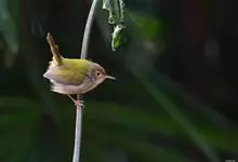普通缝叶莺,是雀形目鹅科莺亚科缝叶莺属一种。体长10-14厘米,体重7-10克,雄鸟前额棕红,头顶至枕棕橄榄褐,上体橄榄绿染黄,飞羽及尾羽暗褐;繁殖期雄鸟的中央尾羽特形延长,下体淡皮黄白色。…全部>>