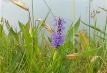 梭鱼草是雨久花科,梭鱼草属多年生挺水或湿生草本植物,株高可达150厘米,地茎叶丛生,圆筒形叶柄呈绿色,叶片较大,深绿色,表面光滑,叶形多变,但多为倒卵状披针形。花葶直立,通常高出叶面,穗状花序顶生,…全部>>