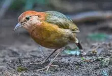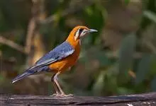 橙头地鸫是鸫科、地鸫属中型鸟类,体长18-22厘米。整个头、颈和下体橙栗色,其余上体包括两翅和尾蓝灰色或橄榄灰色,翅上多具白色翅斑。虹膜褐色或棕褐色,嘴黑褐色或黑色,脚橙黄色或肉黄色。特征极明显。…全部>>