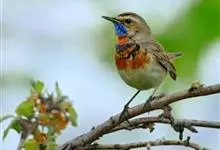 蓝点颏亦称“蓝喉歌鸲”,通称蓝靛颏儿。身体大小和麻雀相似,体长12-13厘米,体重17-18克。头部、上体主要为土褐色。眉纹白色。尾羽黑褐色,基部栗红色。颏部、喉部辉蓝色,下面有黑色横纹。下体白色。…全部>>