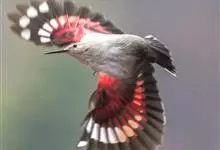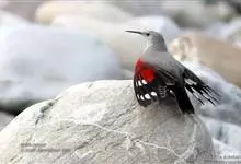 红翅旋壁雀:体重15-23克,体长120-178毫米。是一种体型略小的鸟类。尾短而嘴长,翼具醒目的绯红色斑纹。飞羽黑色,外侧尾羽羽端白色显著,初级飞羽两排白色点斑飞行时成带状。繁殖期雄鸟脸及喉黑色,…全部>>