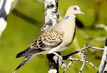 珠颈斑鸠,别名花斑鸠、珍珠鸠、花脖斑鸠、鸪鹪,是鸠鸽科副斑鸠属鸟类。体型中等,体长27~34cm,体重120~205g,雌鸟和雄鸟羽色相似,但雌鸟不如雄鸟羽色亮泽。珠颈斑鸠前额至头顶羽色稍淡,…全部>>