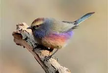 花彩雀莺:体长9-12厘米,是一种毛茸茸偏紫色的雀莺。顶冠棕色,眉纹白。尾长,羽毛松软。前额有一宽阔的眉纹淡黄色,头顶栗色或棕红色,有的具紫蓝色光泽。背灰色,腰和尾上覆羽辉紫蓝色,飞羽灰褐色。…全部>>
