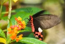 金裳凤蝶是凤蝶科、裳凤蝶属的动物。金裳凤蝶身体呈黑色,头、颈和胸侧有红毛,腹部有黑黄两色相间条纹,雄蝶前翅黑色,具黑天鹅绒光泽,各脉两侧灰白色,后翅金黄色,各室外缘有等腰三角形黑斑1枚,斑内侧有晕,…全部>>