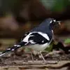 斑背燕尾是鹟科、燕尾属中型鸟类,体长24-25厘米。额至头顶前部白色,其余头、颏、喉、胸黑色,后颈有一白领,背黑色具圆形白色斑点,腰白色,两翅黑色具白色翅斑,尾呈深叉状,黑色、具白色端斑。…全部>>