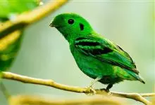 三宝鸟佛法僧科三宝鸟属的鸟类,为佛法僧目三宝鸟属下的一种中小型攀禽,共有10个亚种,体长26-29厘米,体重107-194克。通体蓝绿色,头和翅较暗,呈黑褐色,初级飞羽基部具淡蓝色斑,飞翔时甚明显。…全部>>