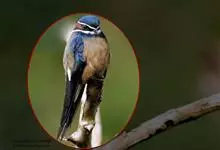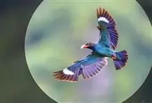 三宝鸟,是佛法僧目佛法僧科三宝鸟属中小型攀禽。成鸟通体为富有光泽的墨蓝绿色,头大而头顶扁平;头部色深近紫黑色,上体至尾泛有铜绿光泽;两翼有幽蓝金属光,初级飞羽黑褐色;羽基淡石青色,形成大块淡蓝,…全部>>