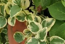 花叶蔓长春花(对叶常春藤)龙胆目 > 夹竹桃科 > 蔓长春花属 > 花叶蔓长春花