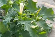 曼陀罗,茄科曼陀罗属一年生大型草本植物,全株光滑。有臭气;叶呈广卯形,边缘具不规则波状浅齿裂;花单生于枝杖间或叶腋,直立,有短梗;花萼是筒状裂片三角形,颜色为白色或淡紫色;果实为蒴果卵状,…全部>>