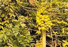 番木瓜,番木瓜科番木瓜属的常绿软木质小乔木,高达10米,具有乳汁;茎不分枝或有时于损伤处分枝;叶大且聚生于茎顶,近似盾形,叶柄中空;花单性或两性,有些品种雄株偶尔生两性花或雌花,…全部>>