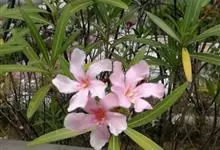 夹竹桃,又名红花夹竹桃、欧洲夹竹桃,是夹竹桃科夹竹桃属的一种常绿直立大灌木,枝条灰绿色,含水液。叶披针形,3叶轮生。聚伞花序顶生,花冠粉红至深红色,花冠漏斗状,有特殊香味。蓇葖果,圆柱形。种子长圆形,…全部>>