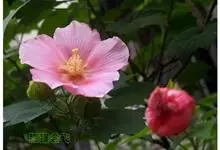 木芙蓉,锦葵科木槿属落叶灌木或小乔木。小枝上有细绒毛;叶片为卵状心形,托叶为披针形,常早落;花单生,花萼为钟形,花冠初为白色或淡红色,后逐渐变为深红色;果实为扁球形,有淡黄色的毛附着。花期8到10月。…全部>>