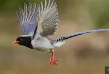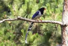 红嘴蓝鹊,别名山鹊、长尾鹊,是鸦科蓝鹊属的一种观赏性较强的大型鸣禽。该物种为体长54~65cm,头、颈、喉和胸黑色,头顶至后颈有一块白色至淡蓝白色或紫灰色块斑,其余上体紫蓝灰色或淡蓝灰褐色。尾长呈凸状,…全部>>
