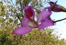 洋紫荆:落叶乔木;树皮暗褐色,近光滑;幼嫩部分常被灰色短柔毛;枝广展,硬而稍呈之字曲折,无毛。叶近革质,广卵形至近圆形,宽度常超过于长度,先端2裂达叶长的1/3,裂片阔,钝头或圆,两面无毛或下面略被…全部>>