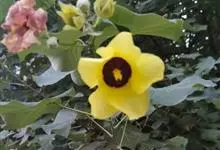樟叶槿为锦葵科木槿属植物。常绿小乔木,高可达7 m。叶纸质至近革质,卵状长圆形至椭圆状长圆形,先端短急尖,基部钝至阔楔形,两面均平滑无毛,上面暗绿色,下面苍绿色。花硕大,黄色,全年不定时开花。果单生…全部>>
