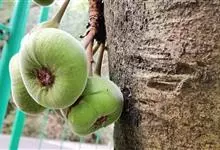 大果榕是桑科榕属的小乔木,株高可达10米;幼枝被柔毛;叶互生,宽卵状心形或近圆形;雄花无梗、匙形、花丝长,雌花生于雌株榕果内,子房白色;榕果簇生于树干基部或老茎短枝上、扁球形或陀螺形,…全部>>
