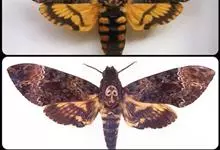 鬼脸天蛾,是鳞翅目天蛾科面形天蛾属动物。成虫翅展100~125毫米,体黑褐色;胸背有骷髅形斑纹;卵圆球形,直径约2毫米,淡黄绿色,表面光滑;老熟幼虫体长70~90毫米,蛹体长约56毫米;前翅为褐色,…全部>>