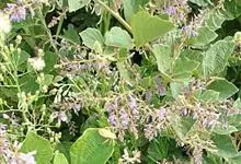 大叶山蚂蝗 Desmodium gangeticum 是属于双子叶植物纲蝶形花科的一种植物。 半灌木,高达1米。茎有柔毛。小叶1,矩圆形,长9-15厘米,宽3.5-7厘米,先端急尖,基部截形或近圆。…全部>>