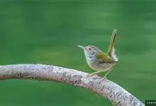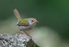 普通缝叶莺,是雀形目鹅科莺亚科缝叶莺属一种。体长10-14厘米,体重7-10克,雄鸟前额棕红,头顶至枕棕橄榄褐,上体橄榄绿染黄,飞羽及尾羽暗褐;繁殖期雄鸟的中央尾羽特形延长,下体淡皮黄白色。…全部>>