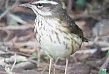 矛斑蝗莺:体长11-14厘米,体重9-13克。上体橄榄褐色密布粗著的黑褐色纵纹,眉纹淡黄色细而不明显,下体乳白色具黑色纵纹,尾羽腹面无白端。虹膜暗褐色;嘴黑褐色,下嘴基黄褐色;脚肉色。…全部>>
